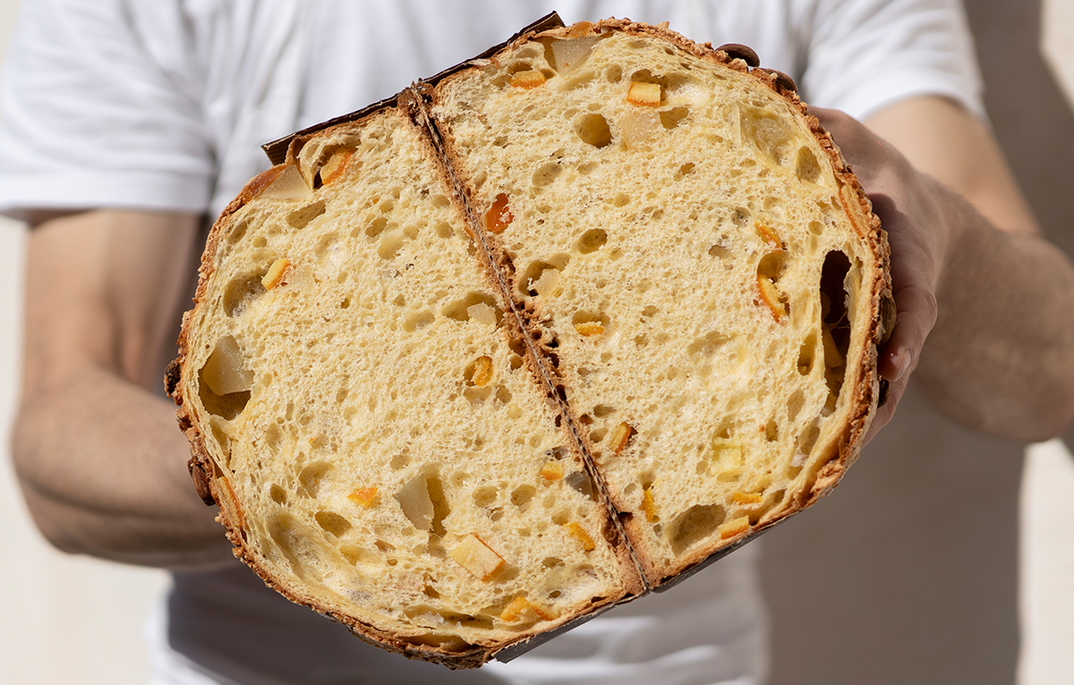 Nei nostri lievitati ci mettiamo un sacco di frutta, perché è il nostro valore aggiunto! La selezioniamo e curiamo durante tutto l’anno e una parte di questa la mettiamo anche nei nostri lievitati. Dagli agrumi alla frutta estiva è tutto candito, sciroppato e conservato da noi.